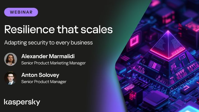 Join this webinar Resilience that scales: Adapting security to every business to discover how Kaspersky Next delivers tiered security for every business: from essential EPP and EDR to AI-driven XDR for proactive defense. We’ll also cover two newly introduced solutions designed specifically for SMBs: Kaspersky Next XDR Optimum and Kaspersky Next MXDR Optimum. These innovations combine powerful protection, automated response, simplified deployment and managed services, giving smaller organizations advanced security without overextending their resources.