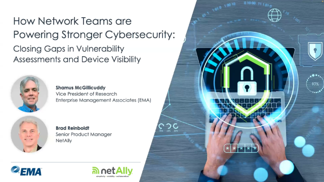 Cybersecurity teams have powerful tools, but they also know they're not the networking experts. When gaps appear in vulnerability assessments or visibility into edge devices, it's the network team that often steps in with the expertise and tools to fill them. Today, 86% of enterprises are seeing increased collaboration between network and security teams, according to Enterprise Management Associates (EMA) research, and with good reason. Strong partnerships lead to stronger defenses. In this webinar, EMA Vice President of Research, Shamus McGillicuddy, and NetAlly Senior Product Manager, Brad Reinboldt, will reveal how network teams are becoming vital contributors to cybersecurity initiatives and how the right tools can amplify that impact. What you’ll learn: - Proven strategies for improving collaboration between network and security teams - How network tools enhance vulnerability assessments and provide critical visibility into IoT and unmanaged devices - The role of NetAlly's CyberScope® Edge Network Analyzer & Vulnerability Scanner in strengthening your security posture