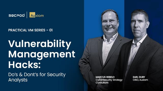 In this live webinar, we bring you the veteran insights from Earl Duby, CISO at Auxiom, and Marcus Rebelo, Cybersecurity Strategic Consultant on practical vulnerability management strategies.