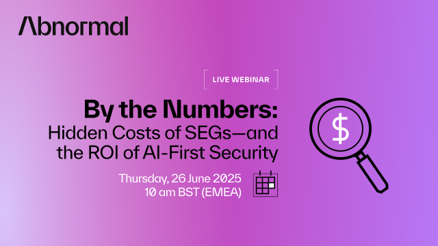 Legacy secure email gateways (SEGs) are struggling to keep pace with today’s advanced, AI-powered threats. Join us for an insightful 30-minute webinar where we explore what really happens when organisations retire their SEG and replace it with behavioural AI from Abnormal. Backed by independent research and real-world examples, we’ll uncover how security teams are streamlining operations, cutting costs, and significantly improving threat detection. Whether you're curious about modernising your email defences or looking to reduce operational overhead, this session will offer clear, actionable insights. Join our session on 26 June to discover: * How behavioural AI reduces user-reported phishing triage time by 91%. * Why 94% of organisations report significantly improved email security efficacy after switching. * How AI eliminates false positives and cuts grey mail clutter—saving thousands of hours annually. Register now and see why security professionals say, “It just works.” **Webinar attendees are eligible for 1 CPE credit through ISC2. Please claim your ISC2 CPE credit here: https://bit.ly/4f3xas3