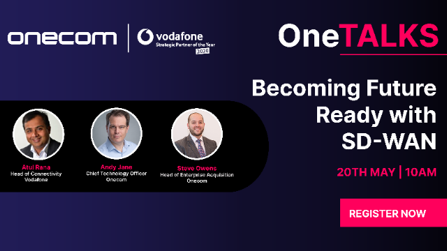 Meet OneConnect, bringing the power of SD-WAN and the intuitiveness of a single cloud managed service platform together to transform the connectivity game in 2021. Join experts from Onecom and Vodafone on the 20th May as we delve into the latest trends in connectivity and discover a true end-to-end solution that puts you in the driving seat.