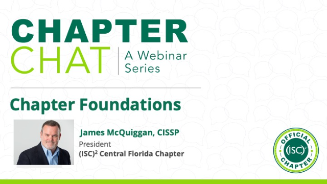 Within the ever-growing and changing world of cybersecurity, networking is one aspect that has been important over the years for many professionals. Networking in the sense of communicating, collaborating, and supporting each other and not in the switch, router, and Layer 2 or 3 sense. This particular trait has been influential within the foundation of the (ISC)² chapters. The concepts of Connect, Educate, Inspire, and Secure are the pillars of the chapter's foundation and are crucial to its success. In the first of a new series of webinars, James McQuiggan, CISSP and Chapter President of Central Florida Chapter, which received the 2019 Chapter Recognition Award will discuss the importance of these pillars and how it relates to the Central Florida Chapter. James will also share his insights into the chapter program and the importance of it to our communities.