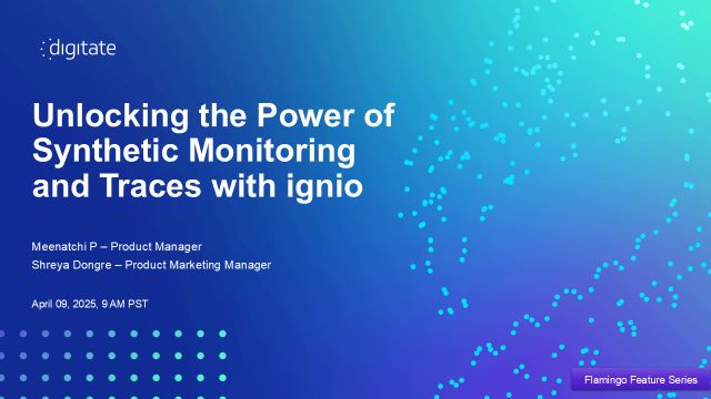 In today's digital-first world, providing seamless user experiences is crucial for maintaining customer satisfaction and business success. However, ensuring the performance and reliability of your applications across different environments can be challenging. That's where ignio Observe comes in. In this webinar, we will dive deep into the features of Synthetic Monitoring and Traces, two powerful capabilities of ignio Observe, that help organizations proactively monitor the health of their applications and infrastructure. With ignio Observe, you can simulate user behavior and monitor your systems in real-time to ensure optimal performance at all times. Join us as we walk you through how Digitate's ignio can enhance your monitoring strategy and improve system reliability