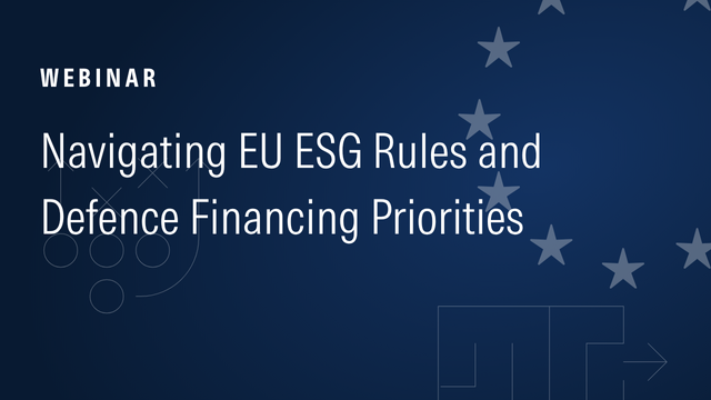 Join Morningstar Sustainalytics' specialists to gain valuable insights into navigating EU ESG rules and defense financing priorities — and their implications for APAC investors.