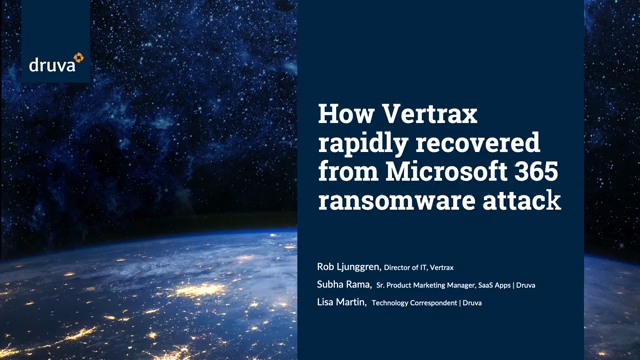 Druva enables cyber, data and operational resilience for every organization with the Data Resiliency Cloud, the industry’s first and only at scale SaaS solution. Customers can radically simplify data protection, streamline data governance, and gain data visibility and insights as they accelerate cloud adoption. Druva pioneered a SaaS-based approach to eliminate complex infrastructure and related management costs and deliver data resilience via a single platform spanning multiple geographies and clouds.