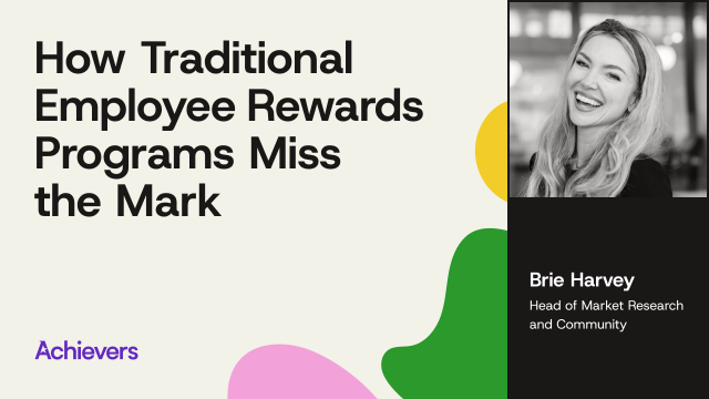 In this session, Achievers' Head of Market Research and Community, Brie Harvey, will share the latest research from Achievers Workforce Institute exploring the evolving landscape of employee rewards. We'll uncover the most common reasons why many well-intended investments in traditional rewards programs fall flat and fail to drive cultural and behavioral outcomes.