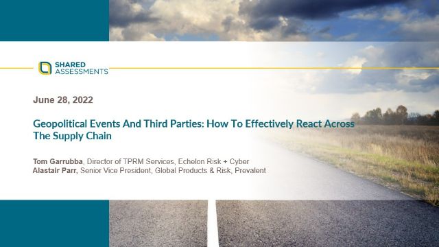 Third parties operate globally, in unpredictable landscapes and geographies. As localized geopolitical events emerge, businesses need to react and adjust to ensure resilience of the supply chain and supporting parties.