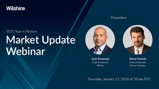 Please join us for the 2025 Year in Review and Market Update Webinar. Josh and Steve will review key takeaways from 2025's market activity, a few points on Wilshire's market outlook, and how our portfolios express these views.