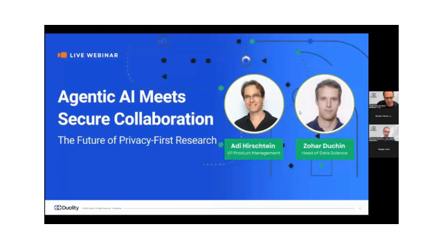 This webinar explored Duality Agents, an innovative framework that transformed collaborative research with AI. Attendees discovered how these intelligent, agent-based assistants acted as personal research partners, streamlining complex analyses, generating insightful reports and uncovering new patterns—all through simple English commands. It also highlighted how Duality's advanced privacy-preserving technologies ensured that sensitive data remained encrypted and secure throughout every AI-powered workflow, guaranteeing no data leakage. The session revealed how the power of AI could be leveraged to achieve deeper insights without compromising privacy. During the webinar, attendees learned how Duality Agents can: Automate repetitive research and reporting tasks Keep all data encrypted and compliant—always Translate plain-English questions into real-time insights Understand data and recommend relevant analyses