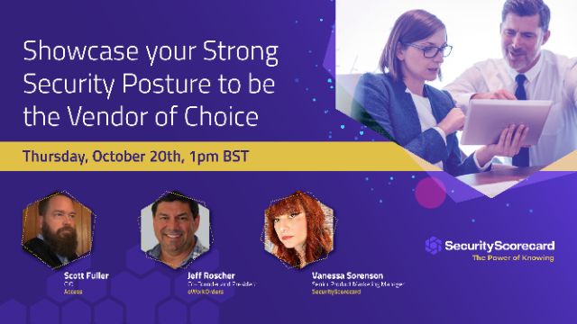 Every business, regardless of industry, should see cybersecurity as a critical part of their strategic success. A company can have the best tactical solution, but if their security posture is weak or their reputation is tarnished with a breach, companies can suffer from hefty fines and a lack of trust with their customers. Being able to show proof of your security assumptions and posture eases onboarding to new customers and instills trust with the vendors who are deciding to work with you. Showing your security up front shortens the questionnaire process, getting deals to close quicker and your solution into customer environments faster. Join Scott Fuller, CIO at Access, Jeff Roscher, Co-Founder and President at eWorkOrders, and Vanessa Sorenson, Sr. Product Marketing Manager at SecurityScorecard in a webinar where you will learn: - How to show off your positive security posture - How transform your organization to a proactive and risk-averse culture - When, where, and how to securely showcase your certifications to instill trust with your vendors Sign-up for your free Scorecard: https://signup.securityscorecard.com/webinar-thank-you/