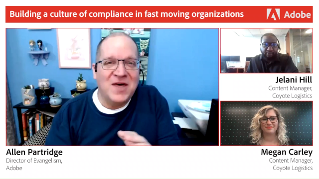 Join Megan Carley, Director of Talent Success, and Jelani Hill, Content Manager from Coyote Logistics, in a fireside chat with Dr. Allen Partridge from Adobe as they explore how Coyote Logistics navigates the complex landscape of several international regulations and prepare a frequently shifting workforce.