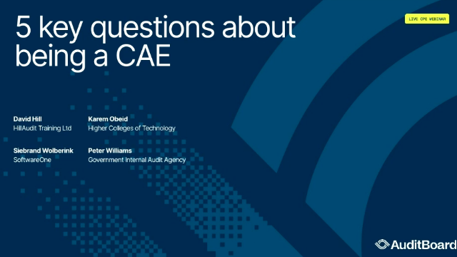Join us for an insightful webinar where we delve into the pivotal role of the Chief Audit Executive (CAE) in today's dynamic organisations. This session, titled "5 Key Questions about being a CAE," will explore how a CAE can become a valued member of the organisation, a trusted advisor, and a key player in helping the organisation achieve its objectives. Our panel of very experienced individuals will share their valued thoughts on leveraging forward-thinking techniques and innovation while embodying essential personal skills such as empathy, courage, scepticism, and tenacity. Discover how different answers and solutions can emerge from the same question, and gain valuable insights into the multifaceted nature of the CAE's role.