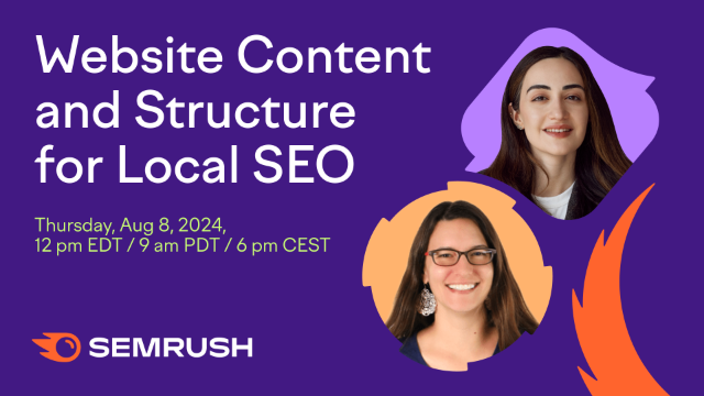 Join our upcoming webinar: Website Content and Structure for Local SEO, with content and SEO expert Dani Owens. We’ll explore how changes to your website content and structure can boost your local search rankings. Whether you're a small business owner, a franchise manager, or part of an agency, this session is packed with expert strategies to help you stand out online and attract more local customers. To give you even more practical, hands-on knowledge, we’ll also share tips to craft optimized content that increases foot traffic to your business. Don't miss our live demonstration of the Semrush Local and ContentShake AI tools too, designed to streamline and enhance your local SEO. Sign up now and learn effective tactics and tools to turn your website into a customer magnet for your business. What we’ll talk about: - Improve Local SEO with Page Types: Learn how to improve your website’s service pages with local keywords, tailor location pages for business sites, and define service areas with relevant local terms. - Website Structure for Businesses with Multiple Locations: Discover the best ways to organize your content across multiple locations. Learn how to identify the necessary location and service area pages that your website needs for optimal local SEO results. - Improve Local SEO Impact to Increase Traffic: Uncover powerful tactics to improve your local search rankings, along with metrics and tools to measure SEO success and get more clients to your website. - Harness Semrush Local and ContentShake AI: Discover how ContentShake AI can help you craft blog articles optimized for your local area. Additionally, explore how to use Semrush Local’s powerful suite of tools to effectively, boost online visibility, monitor Google Maps rankings, and manage customer reviews.