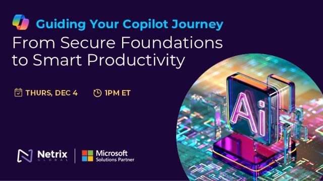 Join Michael Luttenberger and Chris Clark, Field CTOs at Netrix Global, for an interactive session that walks through the complete Copilot journey, from securing and governing your data with Microsoft Purview to managing access and blocking sensitive content, all the way through identifying real ROI, top use cases, and building a competent, AI-ready workforce.