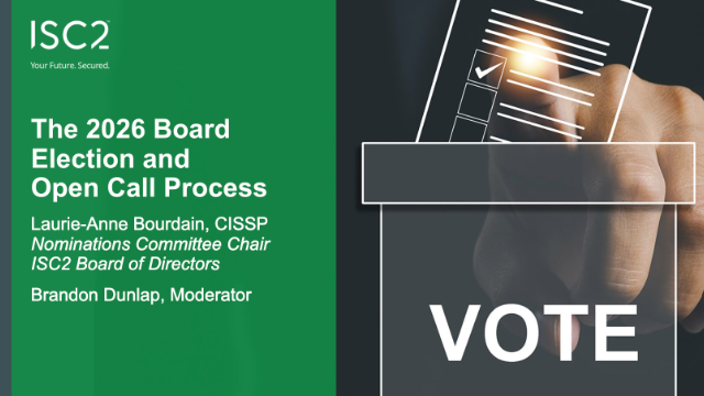 The ISC2 Nominations Committee will walk members through this year’s election process, starting with our Open Call for Nominations. Any qualified member interested in serving on the ISC2 Board of Directors can nominate themselves. Attendees of the webinar will learn more about the nomination process and what the Board is looking for in Director candidates. Additionally, we’ll review timelines and what else you can expect from this year’s election. Moderated by Brandon Dunlap, the conversation will be led by Laurie-Anne Bourdain, CISSP, Board of Directors, Nominations Committee Chair (Belgium).