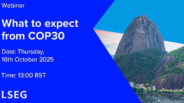 Join LSEG’s upcoming webinar where we discuss some of the key themes that we expect to see at COP30 in November.