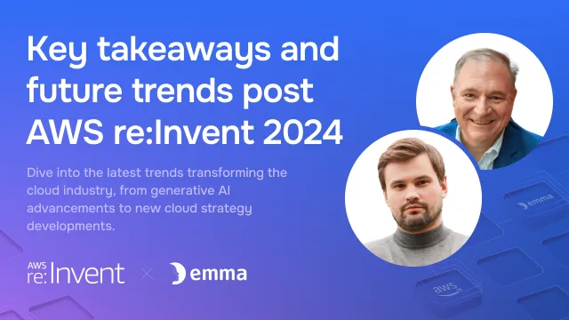In this fireside chat, David Linthicum, a renowned enterprise technology thought leader, and Dmitry Panenkov, founder and CEO of emma, reflect on key takeaways from the recent AWS re:Invent conference. Together, they explore the emerging trends shaping the cloud industry, from generative AI to evolving cloud strategies.