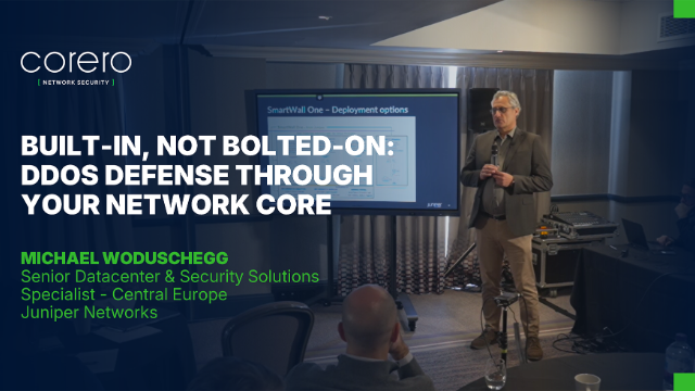 In this dynamic keynote, Michael Woduschegg, Head of Juniper’s Cybersecurity business outside the U.S., shares his candid insights into the evolving threat landscape and how Juniper and Corero are reshaping DDoS defense. Michael reflects on his journey—from building early carrier networks to partnering with innovators like Shlomo Kramer—and now driving Juniper’s vision of AI-native secure networking.