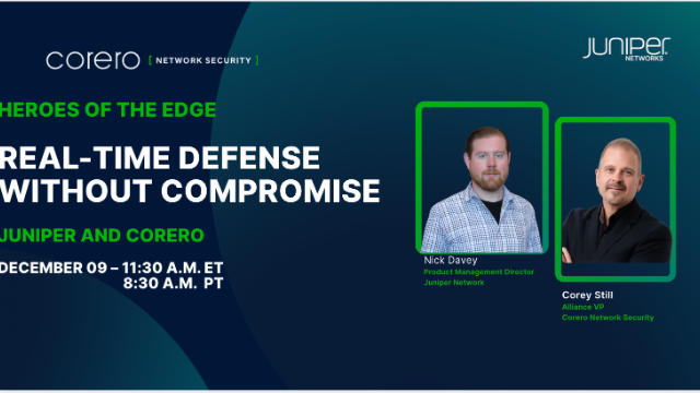 Join Juniper and Corero security experts Nick and Corey for a game-changing conversation about next-generation DDoS defense. This isn't another vendor pitch—it's a practical exploration of how leading enterprises are breaking free from the limitations of traditional mitigation approaches.