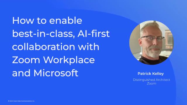 Join Zoom's Patrick Kelly, Distinguished Architect, to learn how you can best use both Zoom and Microsoft across your organization. We’ll showcase how to reduce friction across your workflows, leverage Zoom’s AI Companion at no additional cost, and reduce your total cost of ownership while increasing business value.