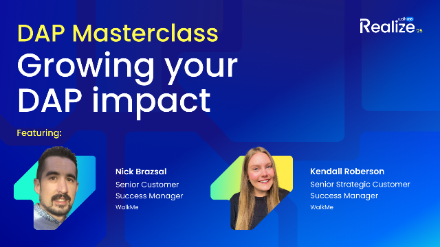 Ready to go from reactive chaos to strategic empire? Growing your DAP Impact is your fast-track workshop for turning ad-hoc efforts into a streamlined, scalable Digital Adoption Program. Designed for early-stage program managers, this session breaks down the key moves for building a strong foundation that grows with you—from setting a strategy and rallying stakeholders to automating operations and proving impact. WalkMe experts Kendall Roberson and Nick Brazsal will guide you through a gamified journey (think Monopoly meets DAP mastery) to help you: - Optimize your existing solutions for efficiency and engagement - Identify and prioritize high-impact use cases - Build repeatable processes and smart governance frameworks - Automate reporting and content ops to scale faster - Frame and showcase your wins to earn lasting influence Whether you're just passing “Go” or already in the game, this session will give you the playbook to build a DAP Dynasty—efficient, strategic, and built to last.