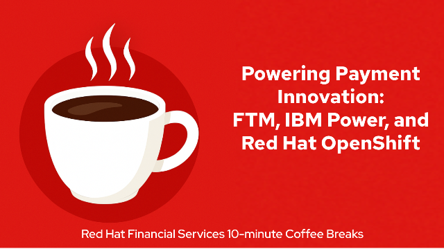 In this Coffee Break explore how IBM Financial Transaction Manager (FTM) and IBM Power systems, in collaboration with Red Hat OpenShift, are modernizing payment processing. We'll highlight how FTM serves as a universal payments hub supporting high-performance, secure, and cloud-agnostic operations and underscores how Red Hat technologies enable hybrid cloud flexibility and future-proof architectures to meet evolving regulatory and customer demands.