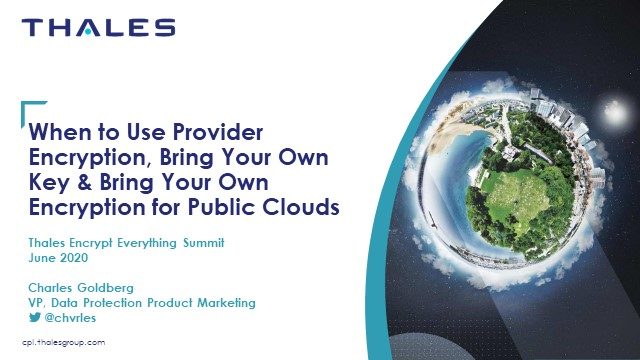 The 2020 Thales Data Threat Report found that 100% of surveyed organizations have sensitive data in the cloud and 57% of it is encrypted. That is a lot of encryption! Furthermore, the trend shows we are encrypting more often to protect brand reputation, authorize data use, and to meet regulations. However, selecting the right encryption and key management solutions for different cloud use cases isn’t always obvious. In this webinar we will discuss the available options, tradeoffs, and how to streamline supporting the ultimate mix of solutions most organizations need to deploy across their multi-cloud and hybrid cloud environments.