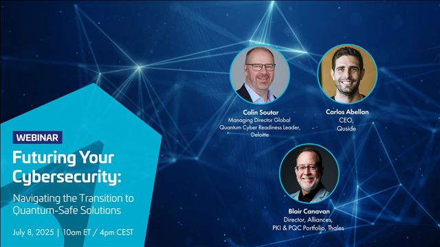 Quside - Carlos Abellan | CEO; Deloitte - Colin Soutar | Managing Director, Global Quantum Cyber Readiness Leader; Thales – Blair Canavan | Director, Alliances - PKI & PQC Portfolio