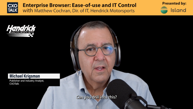 In this interview with CXOTalk, Matthew Cochran, Director of IT at Hendrick Motorsports, explains how the Island Enterprise Browser brings productivity gains and simplification to not only the Security and IT organization, but also to the end users. Zero overhead for user training, taking away burdens from administrators, and giving the team granular control over what users can view and act on (like copy and paste) are examples of how Matthew and his team at Hendrick Motorsports are benefitting from their deployment of the Island Enterprise Browser.