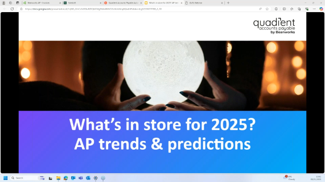 As we move into 2025, the UK has experienced political changes and economic uncertainties. To stay ahead of the game, it's important to keep a pulse on the latest trends and predictions that will impact the finance and accounts payable function. Our upcoming webinar is designed to do just that. Join us as we discuss the issues set to define 2025 for AP teams, including: What impact will artificial intelligence have on the AP function? Preparing for economic and business uncertainty E-Invoicing; what's coming our way? How the AP department can take part in climate change action And much more...