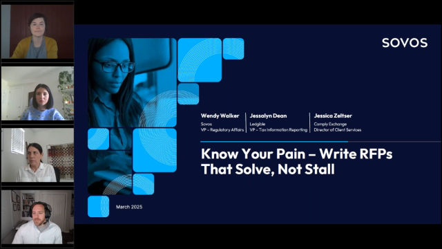 Join Ledgible, Sovos, & Comply Exchange for a detailed on-demand webinar that will walk you through everything you need to know about RFPs for digital asset customer tax reporting compliance. You'll can download an RFP template to use and the webinar will guide you through filling it out.