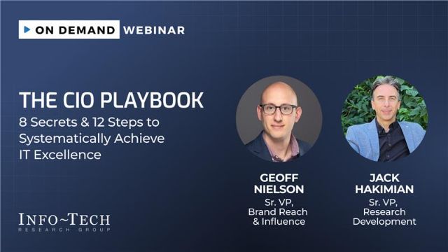 In today’s fast-paced technology landscape, evolving at a linear pace means falling behind. Yet, 81% of C-suite leaders rate their IT departments as being in “firefighter” or “unstable” mode. Worse still, IT leaders face unprecedented challenges such as scarcity of talent and security breaches. IT leaders need a new playbook for today’s challenges. Our road-tested systematic approach is designed to help IT step out of reactive mode and become a true innovator and organizational partner. It helps IT leaders live up to their mandate and catapult organizations into an exponential future. Join this webinar as we discuss a revolutionary approach for transformational CIOs, including: - The eight secrets that are imperative to overcoming your most prominent challenges and systematically improving IT. - A structured framework with 12 actionable steps and best practices for core IT functions. - The proven methodology to lead IT and step away from ad hoc advisory engagements. - An approach that leads to measurable results that align with your organizational, departmental, and personal goals, with annual proof of improvement. Download the CIO Playbook report and methodology here: https://www.infotech.com/cio