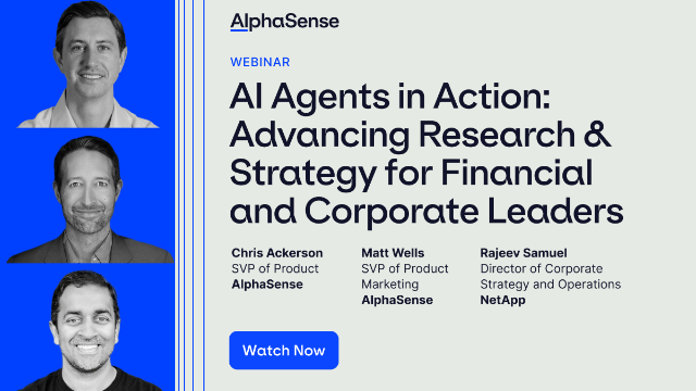 Watch this session to learn how leading professionals are leveraging AI to streamline research, surface critical insights instantly, and move with confidence—no more hours lost to manual work. You'll hear from Rajeev Samuel, NetApp’s Director of Corporate Strategy and Operations, on how AlphaSense’s AI agents are transforming his team’s research workflows.