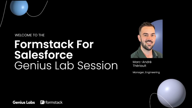 Marc-Andre Theriault, Senior Engineering Manager at Formstack, introduces and demos the Forms and Documents for Salesforce products in this short "Ask Me Anything" (AMA) video. The video highlights new features available on the AppExchange, including enhancements to the form builder and branding wizard. A demo showcases the advanced prefill feature, which allows for dynamic record lookups and secure data handling. The session also discusses the integration of forms with external systems and the automation of document generation. This is a great introduction to several frequently asked questions about our native-to-Salesforce products.