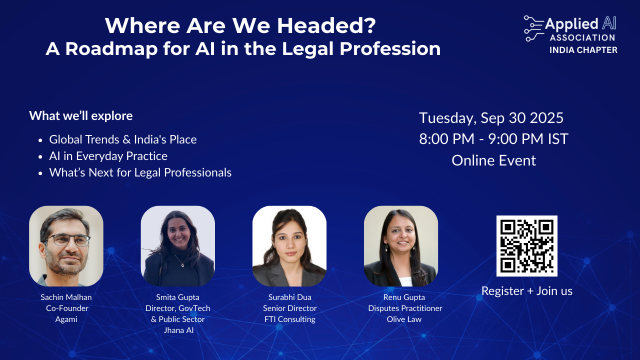 In this panel discussion, leading voices from across the legal ecosystem will share perspectives on the opportunities, challenges, and future roadmap for AI in law. Together, they will explore what global trends mean for India, how firms and courts are adapting, and what skills lawyers will need in the next five years.