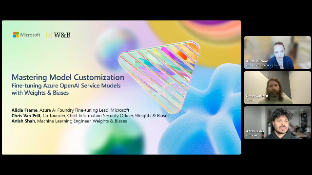 Alicia Frame, Head of Azure OpenAI Foundry Fine-Tuning Lead, Microsoft; Chris Van Pelt, Co-Founder and CISO, Weights & Biases; and Anish Shah, Machine Learning Engineer, Weights & Biases
