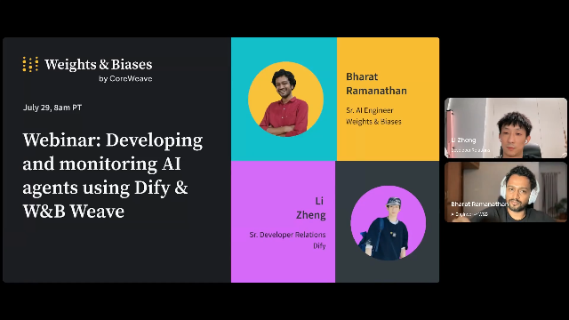 As agentic AI applications become increasingly powerful and complex, building and deploying them with confidence requires the right tools and processes. In this webinar, we’ll guide you through an end-to-end workflow that combines Dify’s open-source LLM app development platform with W&B Weave’s developer-friendly evaluation and monitoring toolkit. Learn how to accelerate your path from prototype to production while ensuring reliability and performance at every stage, including how to: