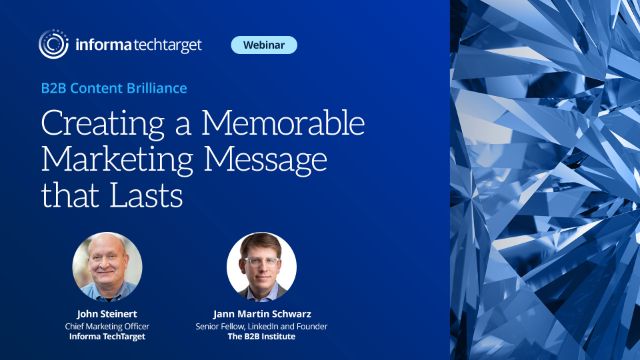 In this webinar series, B2B Content Brilliance we’ve gathered the best minds in B2B content and we’ll be exploring content from every possible angle, from using research to graphic design, and much more. John Steinert (CMO, Informa TechTarget) talks with Jann Martin Schwarz (Senior Fellow, LinkedIn and Founder, The B2B Institute) about the importance of customer promises, how insights can be used to identify a promise that customers will value and who needs to be involved to make sure the motion is fulfilled.