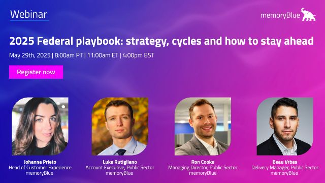 In this 30-minute panel discussion, memoryBlue’s Head of Customer Experience, Johanna Prieto, moderates a candid conversation with three public sector experts — Ron Cooke, Beau Vrbas, and Luke Rutigliano — who are in the trenches every day, supporting organizations selling into complex, long-cycle federal deals.