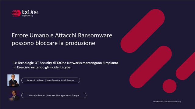 Proteggere il tuo ambiente OT è possibile. E oggi, più che mai, è necessario. Scopri le evoluzioni del 2025 e preparati ad affrontare le nuove minacce. TXOne Networks Italia ti invita a un webinar esclusivo sulla sicurezza OT, in programma per martedì 25 giugno alle ore 10:00 CEST. In appena 60 minuti, analizzeremo i principali trend emersi nel primo semestre dell’anno e condivideremo una visione strategica per affrontare con successo le sfide del secondo semestre. Cosa imparerai durante il webinar: · Le minacce OT più rilevanti osservate nel 2025 · Come stanno cambiando attacchi e vulnerabilità · Le priorità strategiche per la protezione degli ambienti industriali · Best practice concrete per rafforzare la tua sicurezza OT Registrati e preparati al futuro della cybersecurity OT.