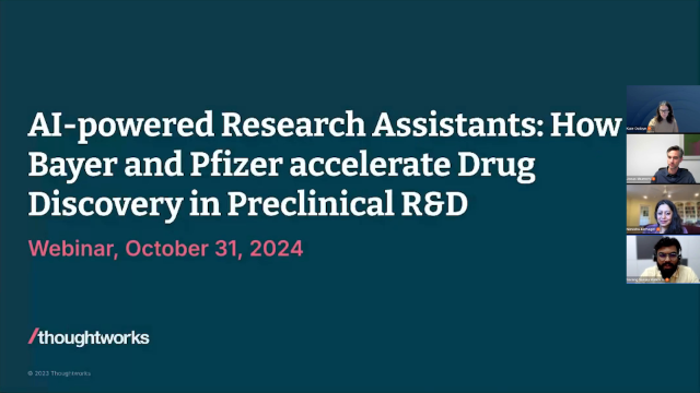 Join experts from Bayer, Pfizer, and Thoughtworks as they explore how a Retrieval-Augmented Generation (RAG) methodology transforms knowledge management and research workflows.