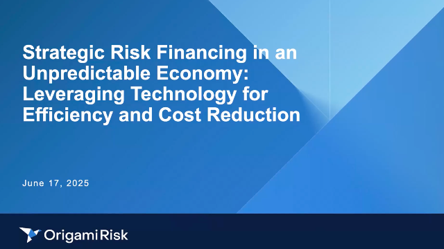 In today’s volatile economic climate, risk managers face unprecedented challenges in managing insurable risks while striving to gain visibility into and reduce their total cost of risk. Mark Baker and Kelly Walsh of Marmon Holdings, a global industrial manufacturing organization, will join Jason Franks of Origami Risk to present a strategic approach to risk financing. The discussion will focus on how technology can create efficiencies in critical processes and offer valuable insights, enabling more informed decision-making to effectively manage risk and cut costs. Learning Objectives: - Optimizing Insurance Renewal and Values Collection: Learn strategies to simplify insurance renewals and accurately collect values, ensuring comprehensive coverage at the best possible rates. - Harnessing Technology for Claims Management: Discover how advanced tools can streamline claims processes, reduce costs, and improve overall efficiency. - Achieving Total Cost of Risk Visibility: Gain insights into tracking and analyzing total cost of risk, enabling data-driven decisions to minimize expenses and enhance risk management strategies.