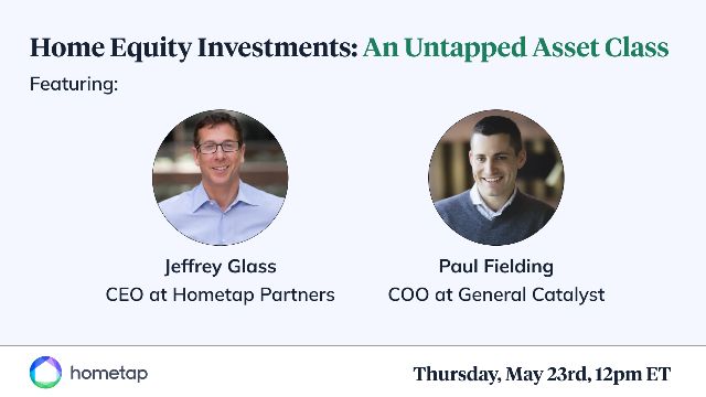 Join Jeff Glass, Chief Executive Officer of home equity investor Hometap, and Paul Fielding, Chief Operating Officer of venture capital firm General Catalyst, for this webcast, where they’ll discuss the growing popularity and advantages of home equity investments for investors and homeowners alike — and how you can begin to participate in this exciting asset class.
