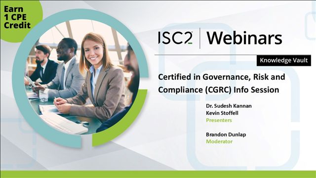 Join us for a deep dive into Certified in Governance, Risk and Compliance (CGRC), the governance, risk and compliance credential from ISC2, creator of the CISSP.