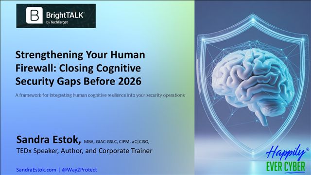 Organizations are investing heavily in advanced security tools. But the most critical—and vulnerable—component of cybersecurity defense is people. As AI-driven attacks and quantum-era risks emerge, the gap between technological capabilities and human cognitive readiness threatens to widen dramatically. Security professionals face unprecedented pressure when responding to incidents. Even with robust detection and recovery tools, factors like stress, fatigue and decision paralysis can significantly increase recovery times and amplify damage. This presentation introduces an expanded MTTR formula incorporating the "Human Cognitive Factor"—a groundbreaking approach that addresses the psychological dimensions of security response that technology alone cannot solve. Join Sandra Estok (Founder & CEO, Way2Protect) to discover why preparing employees will determine your organization's survival in the 2026 threatscape. Key Takeaways: - Master the expanded MTTR formula that quantifies how human cognitive factors impact recovery timelines - Identify early warning signs of team cognitive impairment before they compromise your security posture - Implement practical strategies to build psychological resilience and decision-making clarity under pressure - Establish metrics that measure human performance alongside technical metrics for comprehensive security assessment - Learn how leadership decisions about culture, team structure, and psychological safety directly influence threat response effectiveness