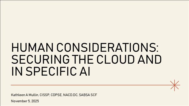 Organizations are rapidly adopting AI technologies without fully understanding the security implications. This is creating unprecedented vulnerabilities in cloud environments. In turn, with AI accessible to all stakeholders, the human factor has become the weakest link in cybersecurity defense strategies. This session addresses critical considerations for IT and cybersecurity leaders to balance business innovation with risk management. Learn how to establish ethical AI frameworks, implement proper access controls, and build awareness programs that protect your organization while enabling AI adoption. Join Kathleen Mullin, vCISO and Consultant, to explore practical strategies for securing AI in cloud environments while maintaining business agility. Key takeaways: • Define clear RACI matrices for AI business risk ownership and accountability • Assess whether AI solutions truly meet business requirements vs. alternative approaches • Establish data governance and access controls specifically for cloud-based AI systems • Develop comprehensive AI awareness programs for organizational stakeholders • Evaluate current and future cloud AI risks within your security framework