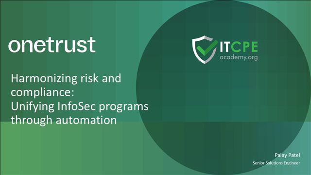 This is a pre-recorded session intended for CPE learning. To earn CPE credit, you may complete the associated self-study course. Here is the free access link to the course: https://www.itcpeacademy.org/course/harmonizing-risk-compliance-unifying-infosec-programs-through-automation-1