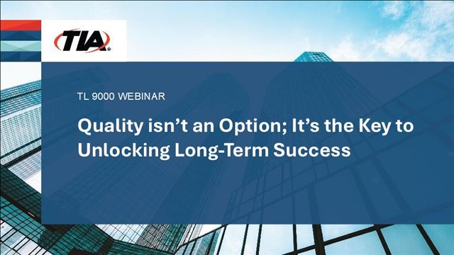 Speakers include Deepti Arora (former Chief Quality Officer at Nokia), Tim Woodcome (Business Unit Director NQA Global), Scot Prehar (Principal Quality Engineer, CommScope) and Mike Regan (VP Business Performance, TIA).