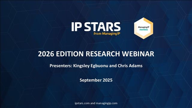 Register for this webinar to learn about the research for the 2026 edition of IP STARS rankings and the Managing IP Awards programme. Registrants unable to join the live webinar will get an email notification about the recording. Agenda 1. Learn about our research for the rankings and awards 2. An overview of the 2026 forms and how to use the submission portal 3. Best practice tips and key research dates 4. Q & A (you can send your questions in advance to research@managingip.com) Please also read about the research at www.ipstars.com/NewsAndAnalysis/The-research-for-the-IP-STARS-rankings-and-Managing-IP-Awards/Index/4176 and listen to webinars for our 2025 edition at https://www.brighttalk.com/series/6742