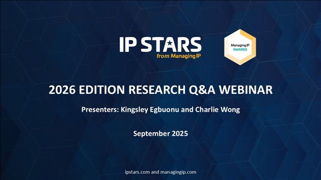 This Q&A webinar has been set up to accommodate people, especially in the Asia-Pacific region, who were unable to join or participate in our global webinar on 16 September. Register for this webinar to ask questions about the research for the 2026 edition of IP STARS rankings and the Managing IP Awards programme. Registrants unable to join the live webinar will get an email notification about the recording. Before you join this webinar, please make sure you listen to our global webinar at https://www.brighttalk.com/webcast/8395/645443. You can send your questions in advance to research@managingip.com. Read about the research on ipstars.com or www.ipstars.com/NewsAndAnalysis/The-research-for-the-IP-STARS-rankings-and-Managing-IP-Awards/Index/4176